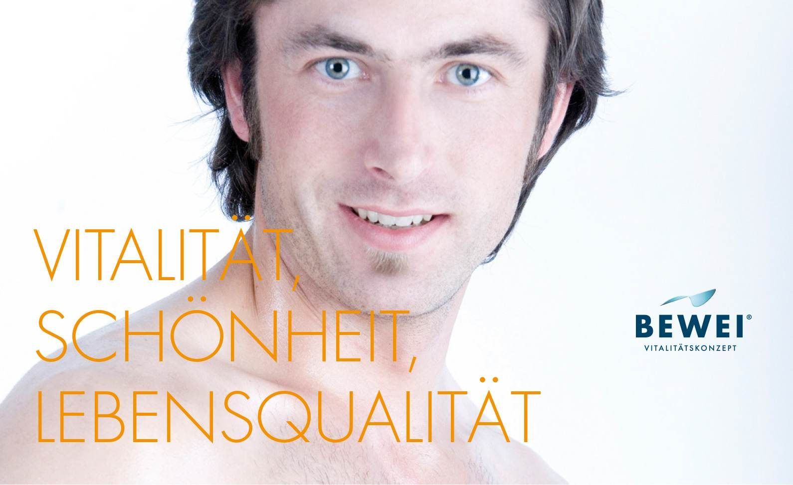 BEWEI - ist für Frauen und Männer, Körper, Gesicht und Hände und verleiht ein ganz neues Vitalitätsgefühl. Das Angenehme an der Anwendung ist, dass sie komplett bekleidet erfolgt. Die BEWEI BODY Behandlung findet darüber hinaus weitestgehend kontaktlos statt. Das persönlich gesteckte Ziel, seinen Körper neu zu formen, Gesicht, Problemzonen und Hände zu optimieren und jünger und vitaler auszusehen beginnt im Kopf und mit einem nötigen Umdenken - das NiSV freie BEWEI VITALITÄTSKONZEPT unterstützt Sie bei der Umsetzung und zeigt Ihnen, wie entspannend der Weg zum Ziel sein kann.