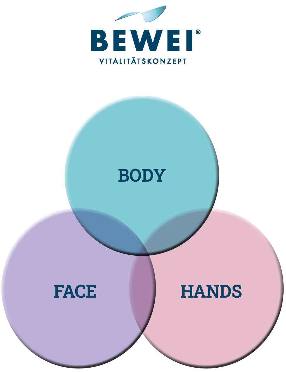 Mittlerweile gibt es auch noch BEWEI FACE und das weltweit einzigartige, personalfreie BEWEI HANDS für junge Hände, die das Alter nicht verraten.